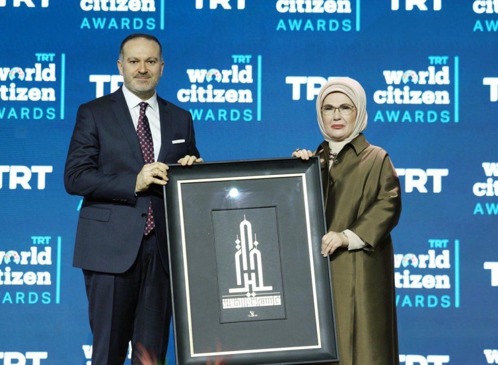 The “World Citizen of the Year” award was presented to Yahya Barzaq, who had been working as a newborn photographer in Gaza and began practicing war photography during the Israel war in order to convey to the world everything that was taking place, and who lost his life in Israeli attacks on September 30, 2025. Barzaq’s award was received by his mother, Yousra Barzaq, from Emine Erdoğan, the wife of President Recep Tayyip Erdoğan.